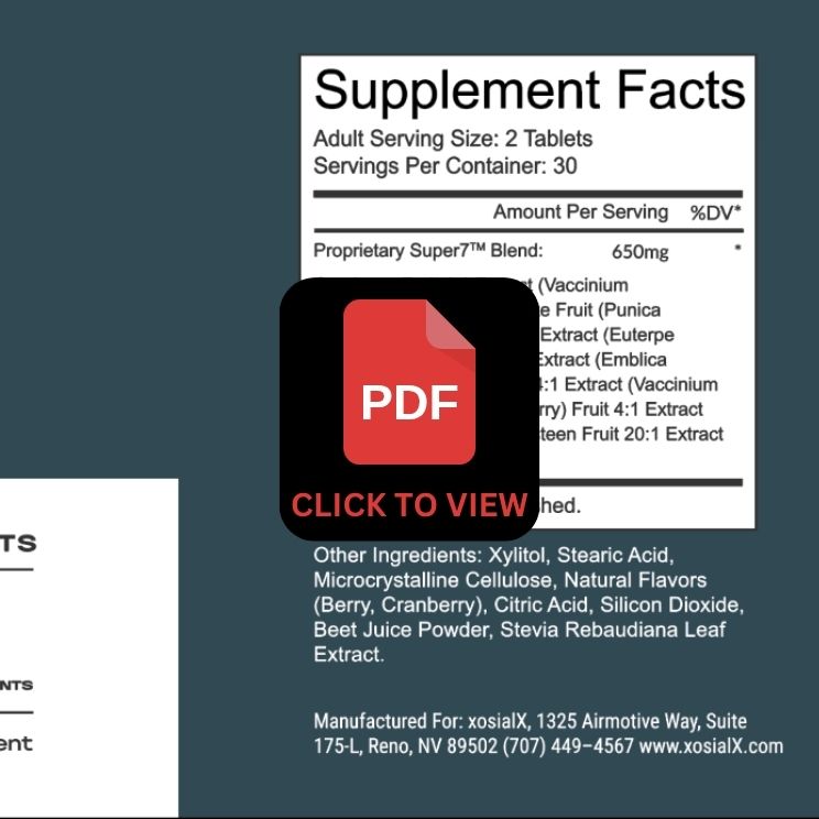 Super7™ is a delicious, nutrient-packed chewable featuring seven powerhouse superfruits: Amalaki, Acai, Goji, Mangosteen, Pomegranate, Blueberry, and Cranberry. This potent blend delivers essential vitamins, antioxidants, and enzymes to support immune health, energy, and overall wellness. Together, these superfruits work synergistically to give your body a natural boost of vibrant nutrition—anytime, anywhere!